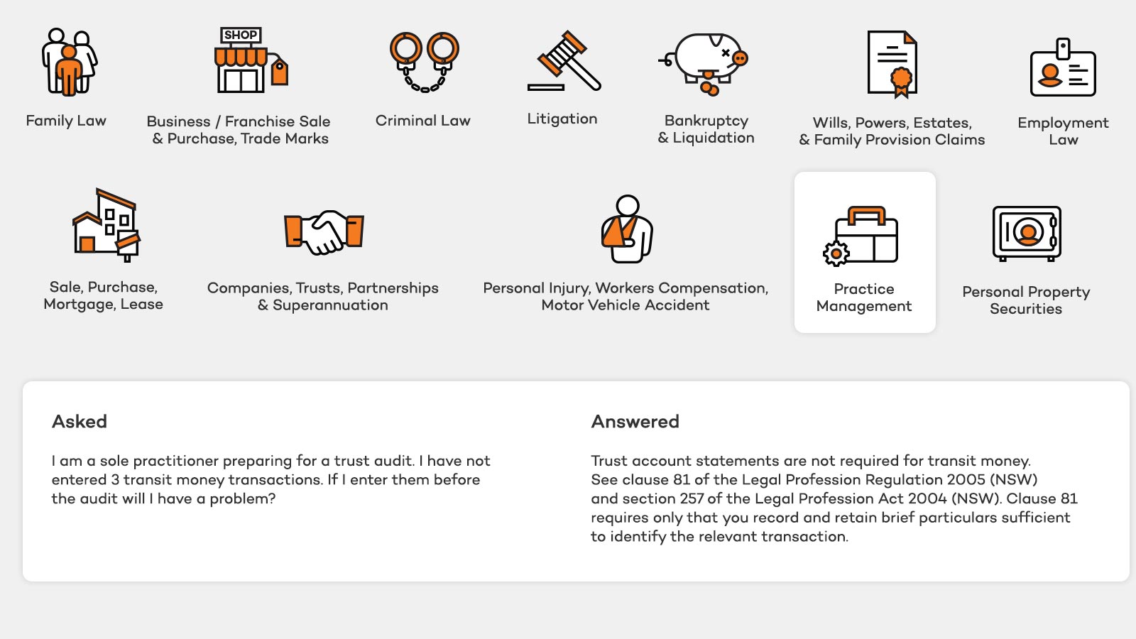 Mentor answers questions that arise in general practice in most areas of law.